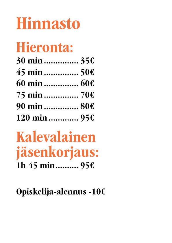 Ota yhteyttä ja tilaa rentouttava hieronta tai jäsenkorjaus!
